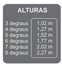 | Degraus | Tesoura Prática – 3 Degraus, Tesoura Prática – 4 Degraus, Tesoura Prática – 5 Degraus, Tesoura Prática – 6 Degraus, Tesoura Prática – 7 Degraus, Tesoura Prática – 8 Degraus |